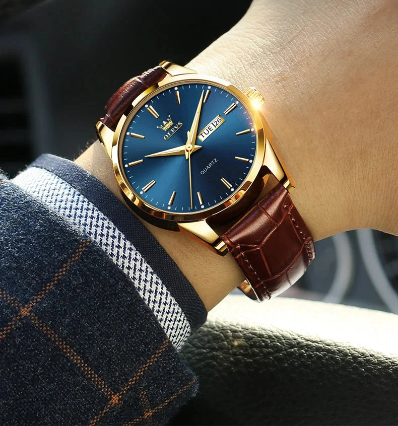 Men's Blue Leather Strap Watch